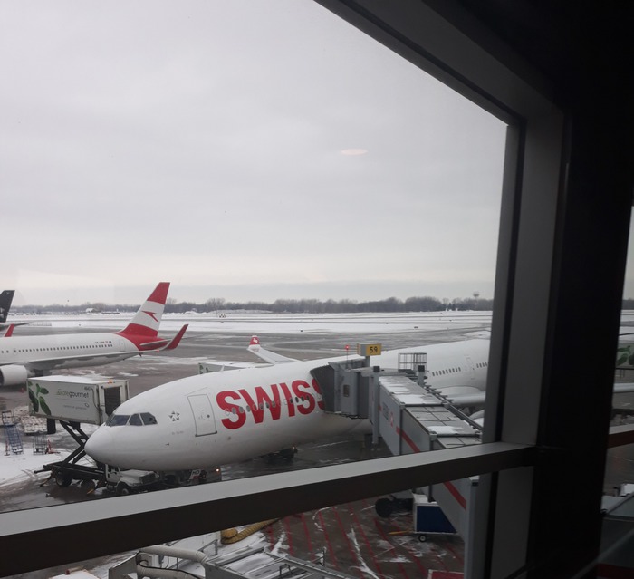 Le premier vol est parti en retard et quand on est arrivé à Zurich il a fallu courir pour prendre le suivant.