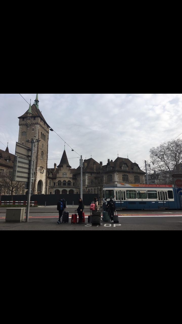 Vers 6 heures on est arrivé à Zurich et en compagnie de Josep on a pris un train et on a marche pendant une demi-heure dans le but d'arriver à un stationnement à 8 heures. On a attendu là-bas pendant trois heures et puis l'autobus est arrivé.